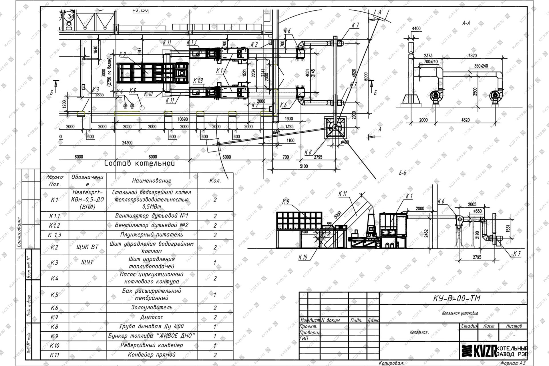 Чтобы правильно подключить котел 0.3 МВт на опилках в котельной необходимо оставить проемы для обслуживания оборудования во время эксплуатации. На представленной здесь схеме указаны их минимальные размеры. Кроме того, в данной примерной схеме монтажа водогрейных котлов и оборудования указан перечень минимально необходимого вспомогательного оборудования для правильной работы котла.