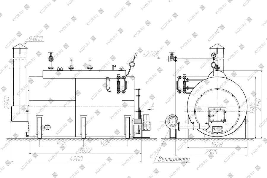 Промышленный стальной парогенератор высокого давления барабанной конструкции изготавливается стальным двухбарабанным вертикальным водотрубным с естественной циркуляцией с экранированной топочной камерой и конвективным пучком.
